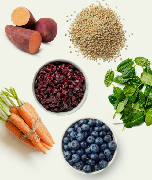 Every bite is packed full of the 6 superfoods for optimal pet health, including quinoa and blueberries, and whole, market-fresh fruits and vegetables bursting with flavor.