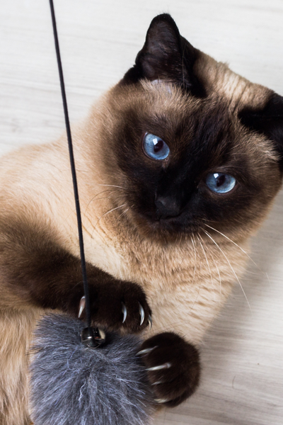 Playing has many forms. It only depends on how creative you are. You can try playing fetch, obstacle courses, and playing with a laser toy to running up the stairs, playing hide-and-seek, or using food puzzle games. The possibilities are endless.